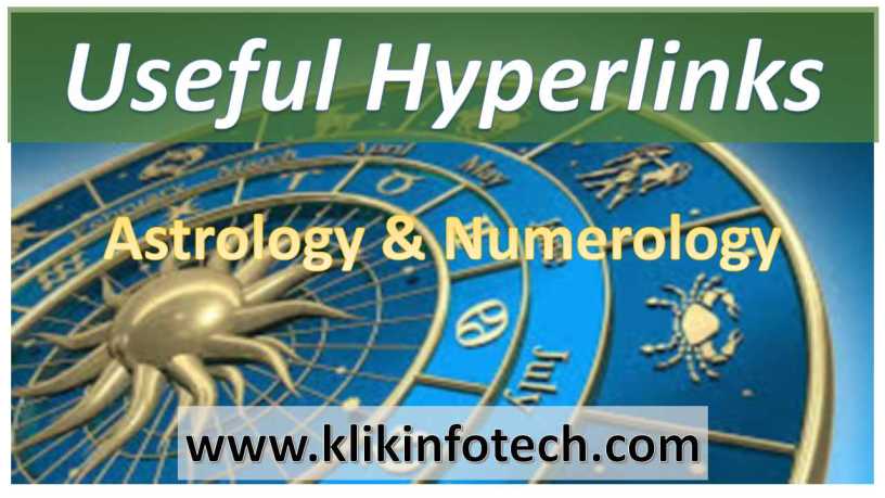 Useful Hyperlinks Astrology & Numerology Date: 04/04/2019Author: KLiK Infotech SL Hyperlinks Description 1 Free numerology calculator 2 Numerology & Horoscope by Number Future Rate this:Share this: Share on X (Opens in new window) X Share on Facebook (Opens in new window) Facebook Share on Pinterest (Opens in new window) Pinterest Share on LinkedIn (Opens in new window) LinkedIn Share on Reddit (Opens in new window) Reddit Share on Tumblr (Opens in new window) Tumblr Email a link to a friend (Opens in new window) Email Print (Opens in new window) Print Share on Telegram (Opens in new window) Telegram Share on WhatsApp (Opens in new window) WhatsApp Like Loading... Related