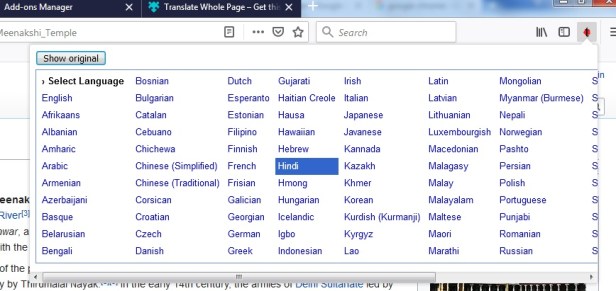 - Click on “translate” icon on URL bar, it will show all the languages available, select your desired language and the entire page will translate into the same language.