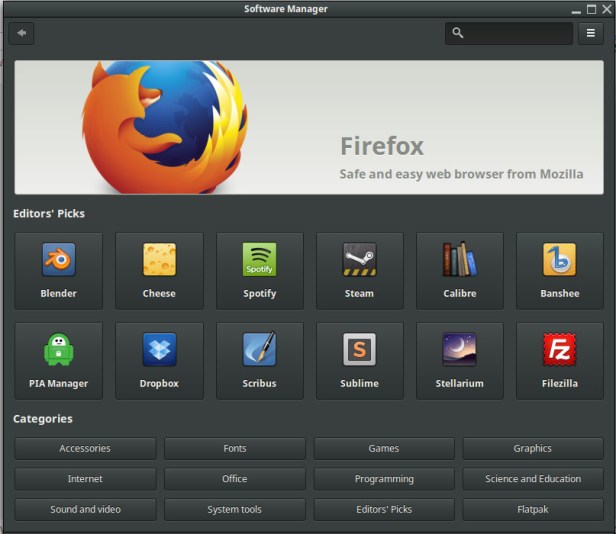 If you see on the top right corner of the software manager, there are three small horizontal lines, if you click on this place you will be able to see all the installed application softwares (just like program manager in windows). If you see the list of softwares you will find that most of the softwares has a “tick” on it, that means that particular software is installed. If there is no “tick” on the software that means that particular software was installed some time in past but now it is not installed. If you left click on any of the listed software you will come to know about the details of the software and you can also install or uninstall the particular software from there.