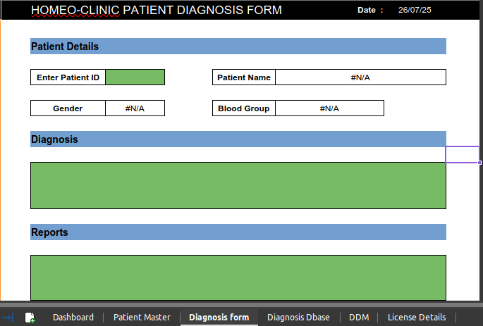 Homeo Clinic Patient Management System is an Offline Software made in Libre Office. The Software gives the facility of registering customer and maintaining customers diagnosis and prescription details in an organised manner. You need to install Libre Office version 25.2.4 in order to run the software effectively.